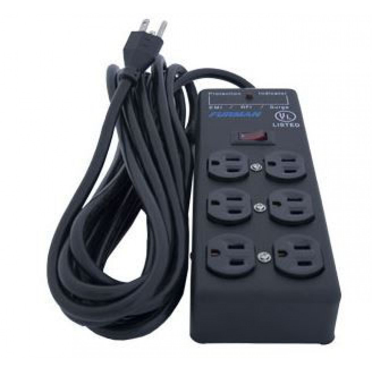 The SS-6B is a 6-outlet steel power block with standard level surge protection, EMI/RFI filtration, heavy duty steel construction, and 15 ft. power cord.