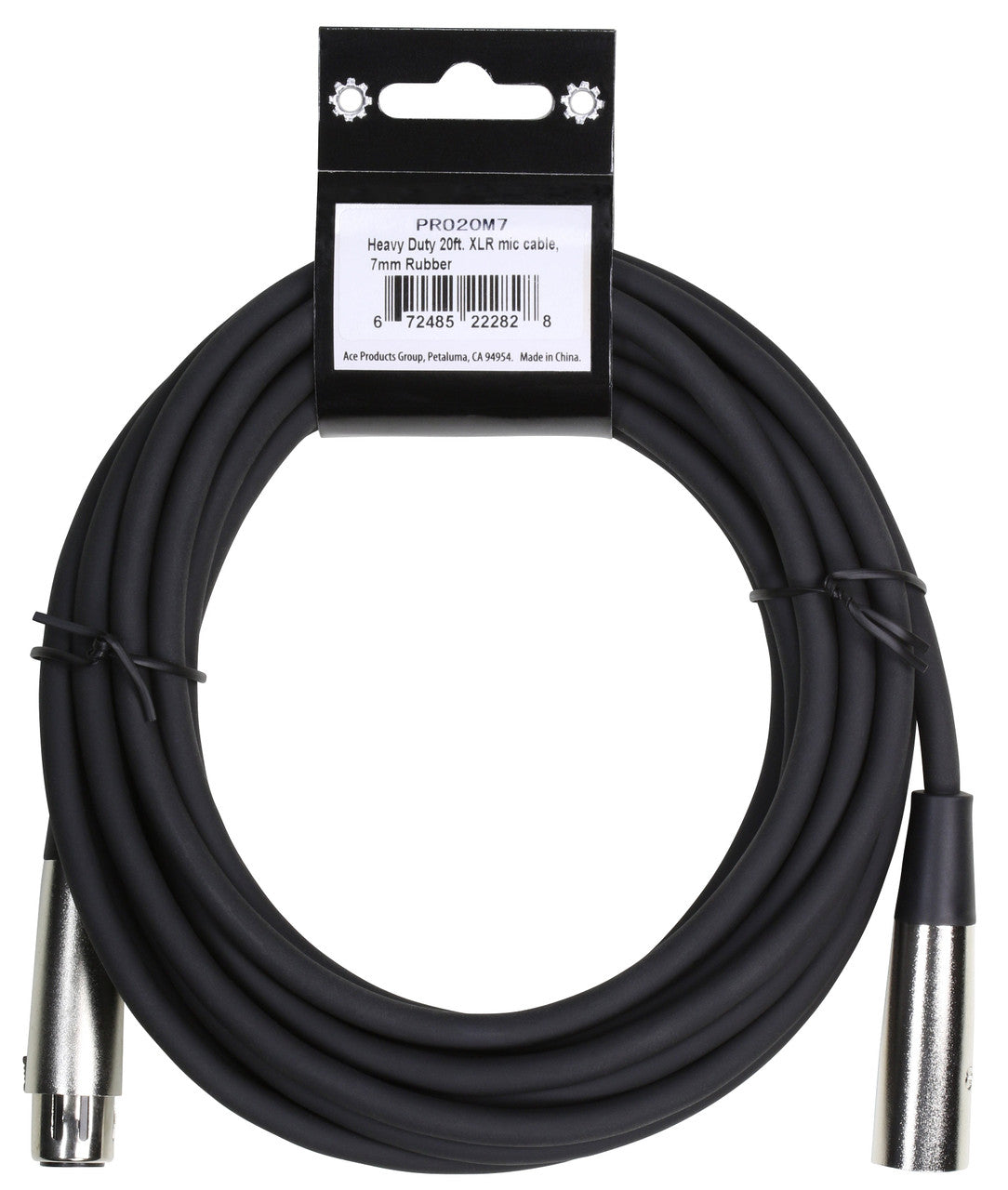 Heavy Duty 20ft. XLR mic cable, 7mm PVC