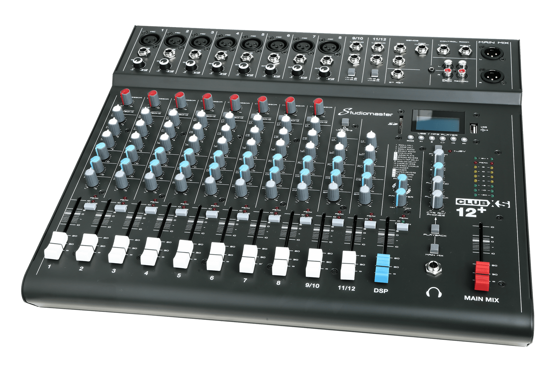 The Studiomaster CLUBXS+ series are a range of comprehensive and affordable compact, hard wearing mixing consoles. With all the features required for live mixing or stereo recording an event, duo or band whether at home, in the rehearsal rooms or out at an event.