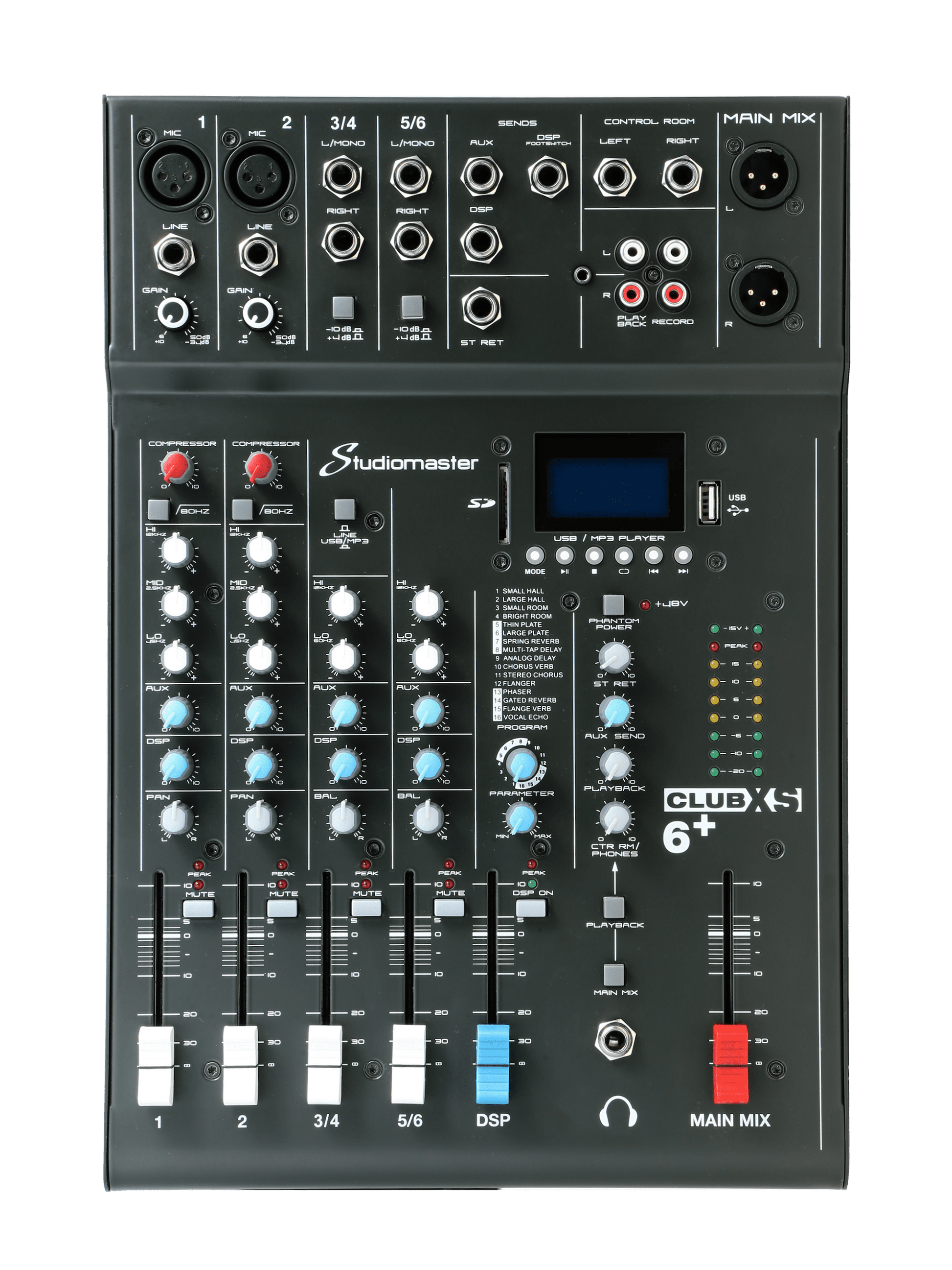 The Studiomaster CLUBXS+ series are a range of comprehensive and affordable compact, hard wearing mixing consoles. With all the features required for live mixing or stereo recording an event, duo or band whether at home, in the rehearsal rooms or out at an event.