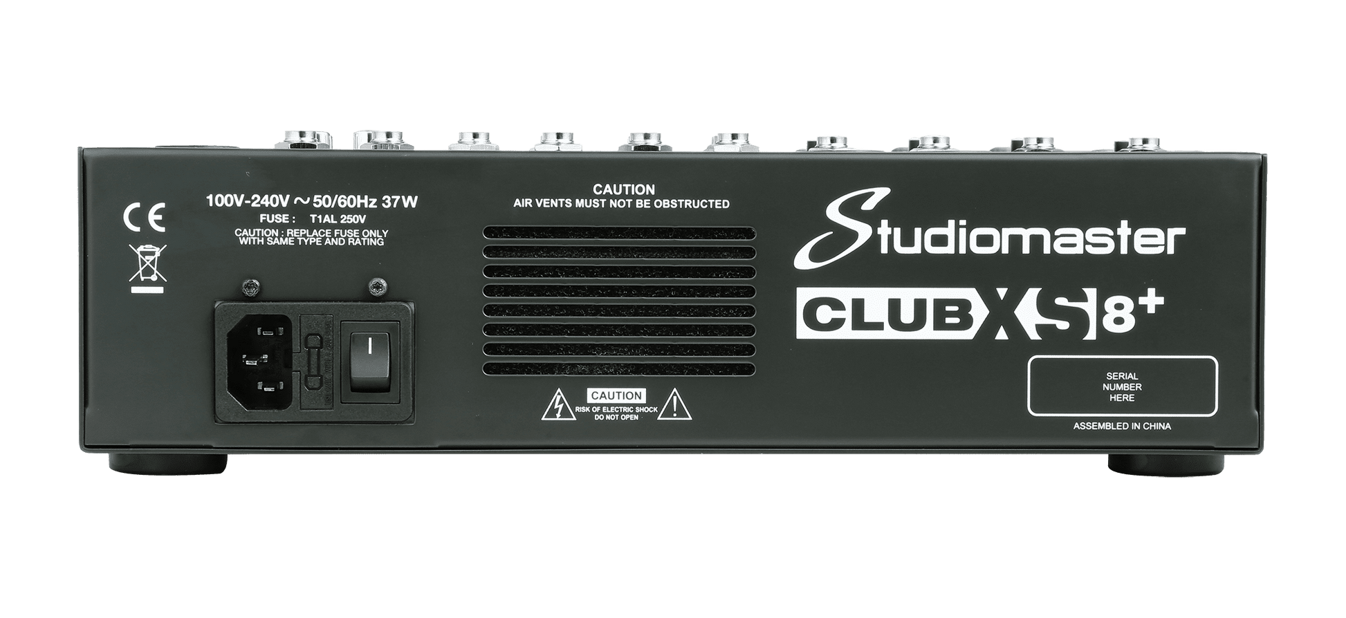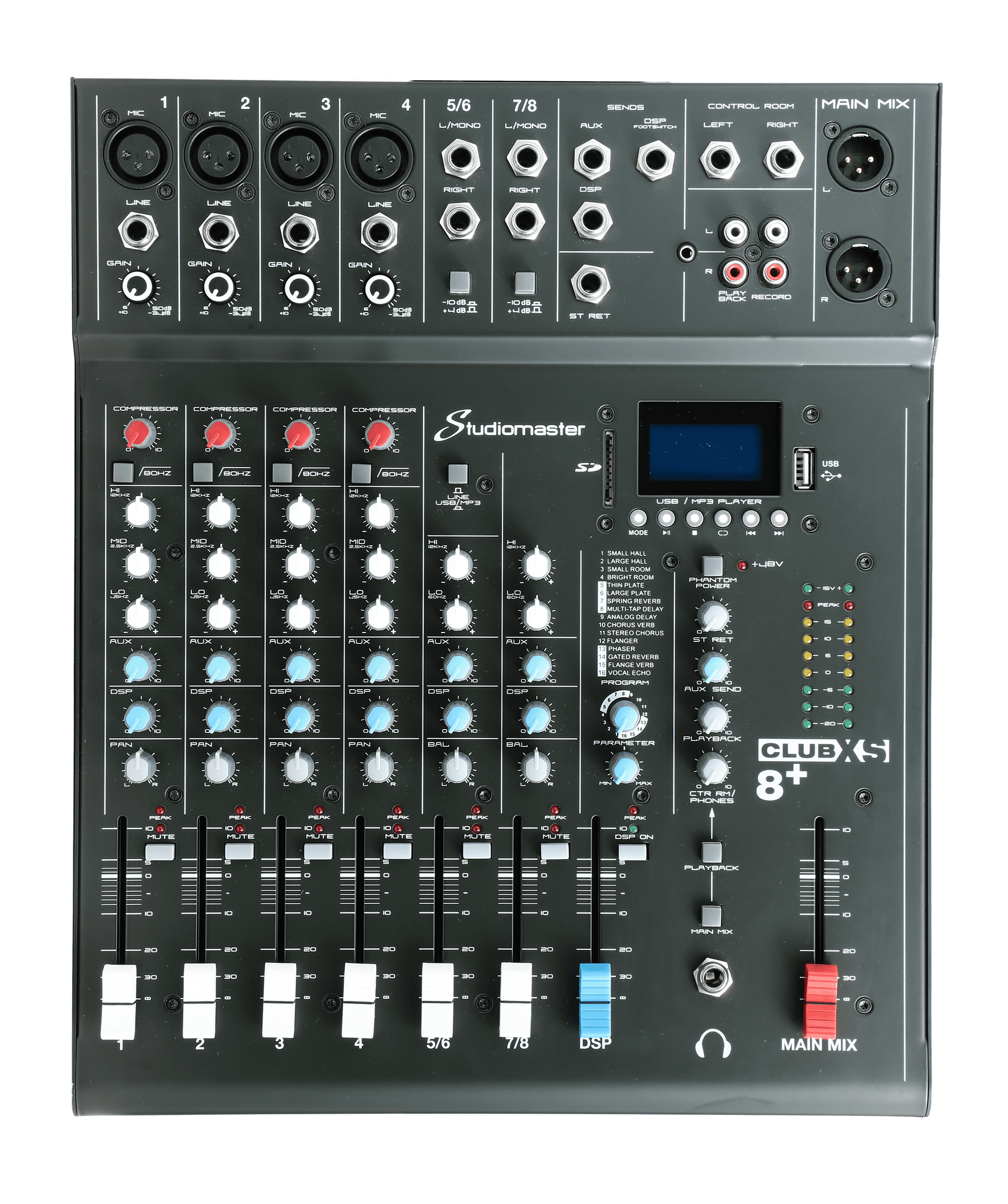 The Studiomaster CLUBXS+ series are a range of comprehensive and affordable compact, hard wearing mixing consoles. With all the features required for live mixing or stereo recording an event, duo or band whether at home, in the rehearsal rooms or out at an event.
